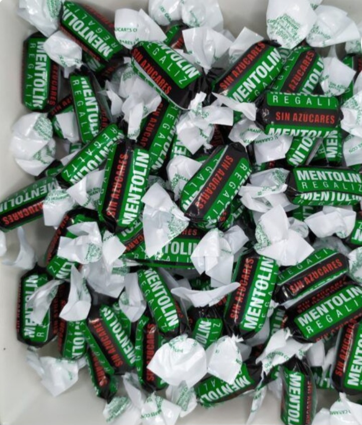 - Isomaltosa, maltitol y acesulfamo-k, extracto de regaliz (2%), aroma natural de mentol y colorante E-153.